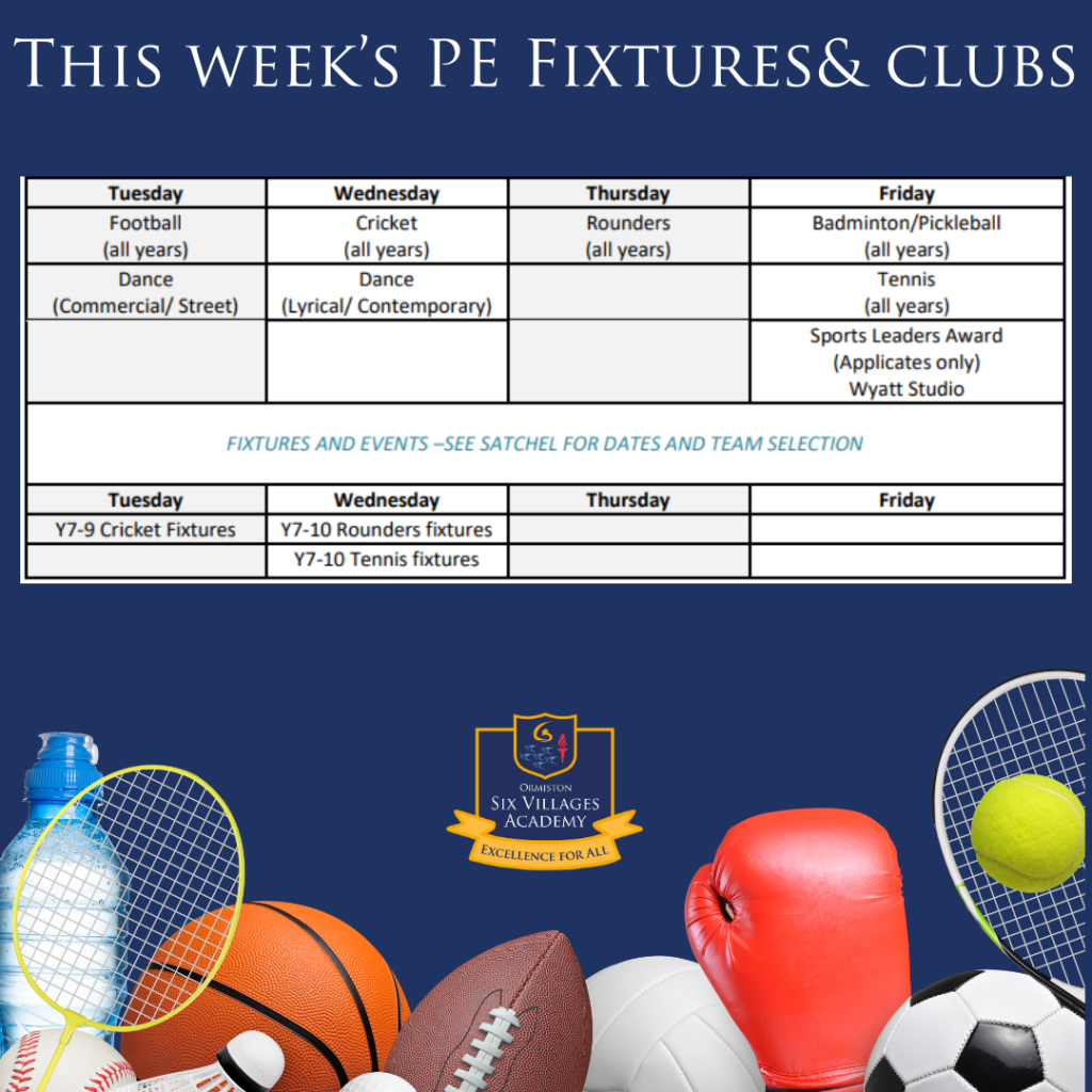This Week's PE Fixtures & Clubs