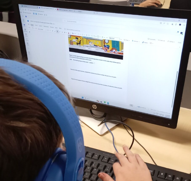 They are learning more about computational thinking and algorithms, while continuing to develop their digital skills by creating newspaper-style front covers.