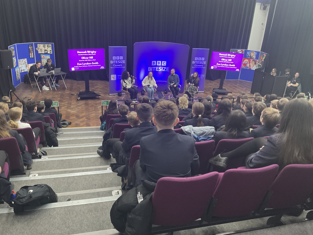 Our students were delighted to welcome the BBC Bitesize Careers Roadshow, giving them an inspiring glimpse into the world of work and future career possibilities. They enjoyed a front‑row experience as they listened to a panel of industry experts.