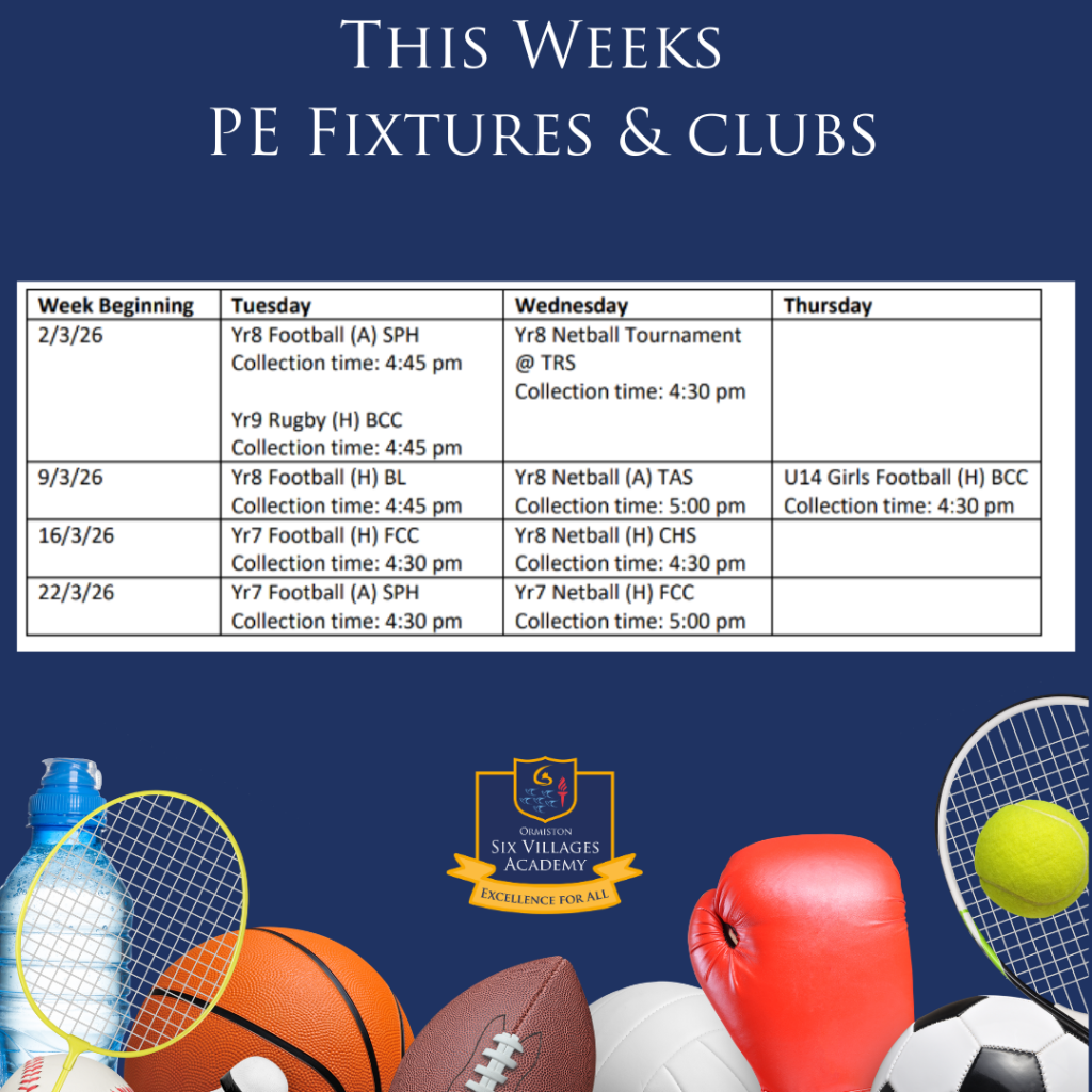 This weeks pe fixtrues and clubs