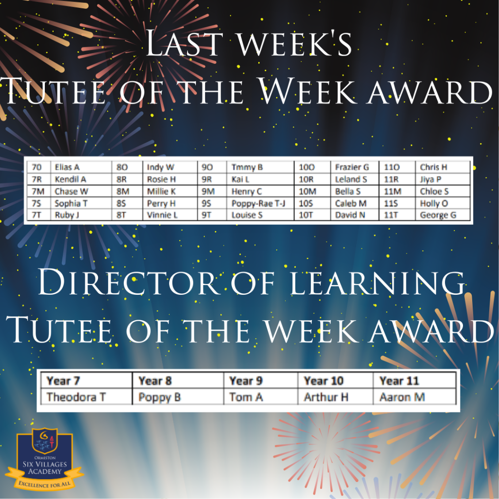 A huge well done to this week’s Tutee of the Week! Their positive attitude, effort, and outstanding contribution to tutor time have really stood out.